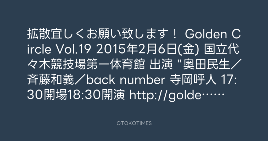 拡散宜しくお願い致します! Golden Circle Vol.19 2015年2月6日(金) 国立代々木競... -