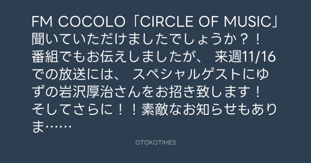 FM COCOLO「CIRCLE OF MUSIC」聞いていただけましたでしょうか?! 番組でもお伝え... -