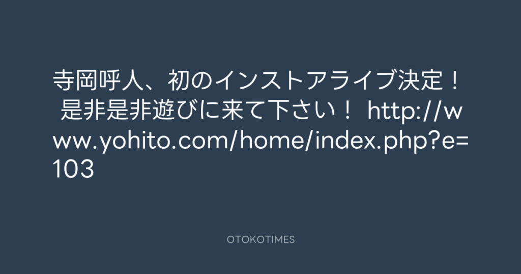寺岡 呼人 @yohitoteraoka – 14:12・2014年9月6日(IG post)