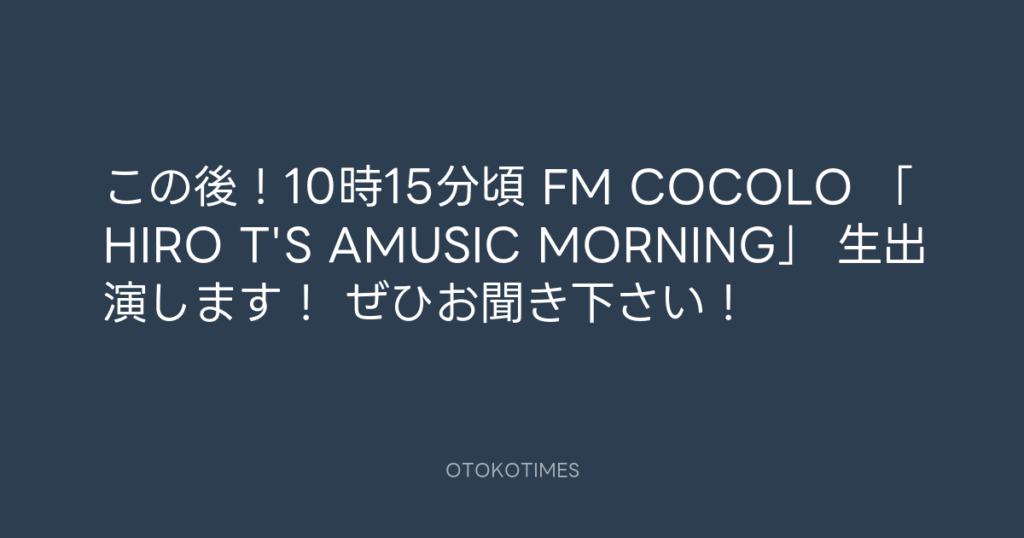 この後!10時15分頃 FM COCOLO 「HIRO T'S AMUSIC MORNING」 生出演します! ぜひ... -