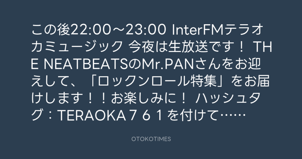 この後22:00〜23:00 InterFMテラオカミュージック 今夜は生放送です! THE NEATBEA... -