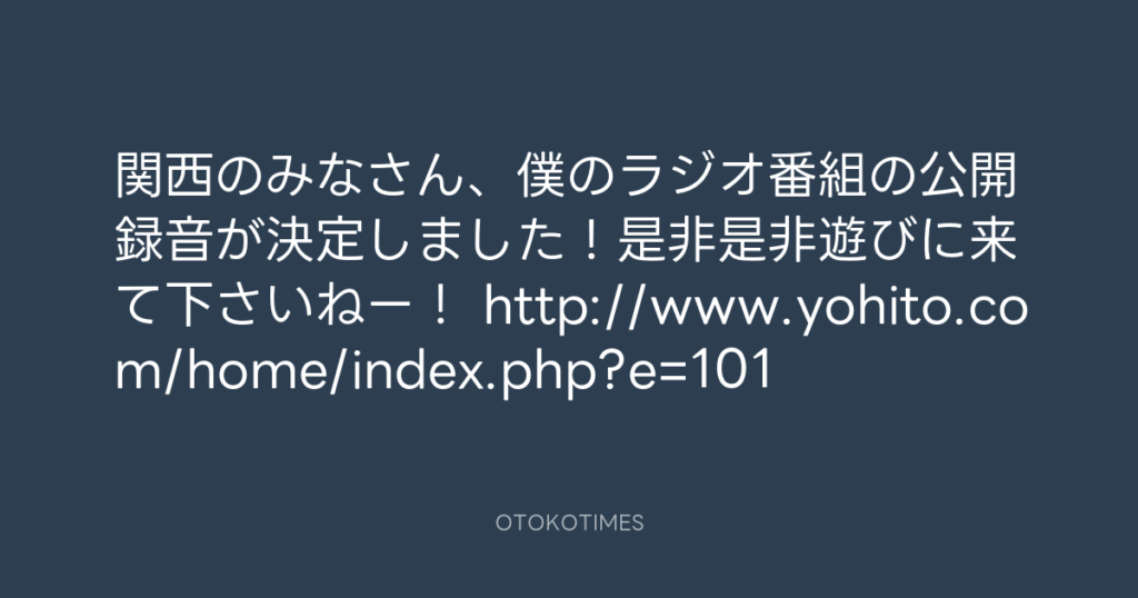 関西のみなさん、僕のラジオ番組の公開録音が決定しました!是非是非遊びに来て下... -