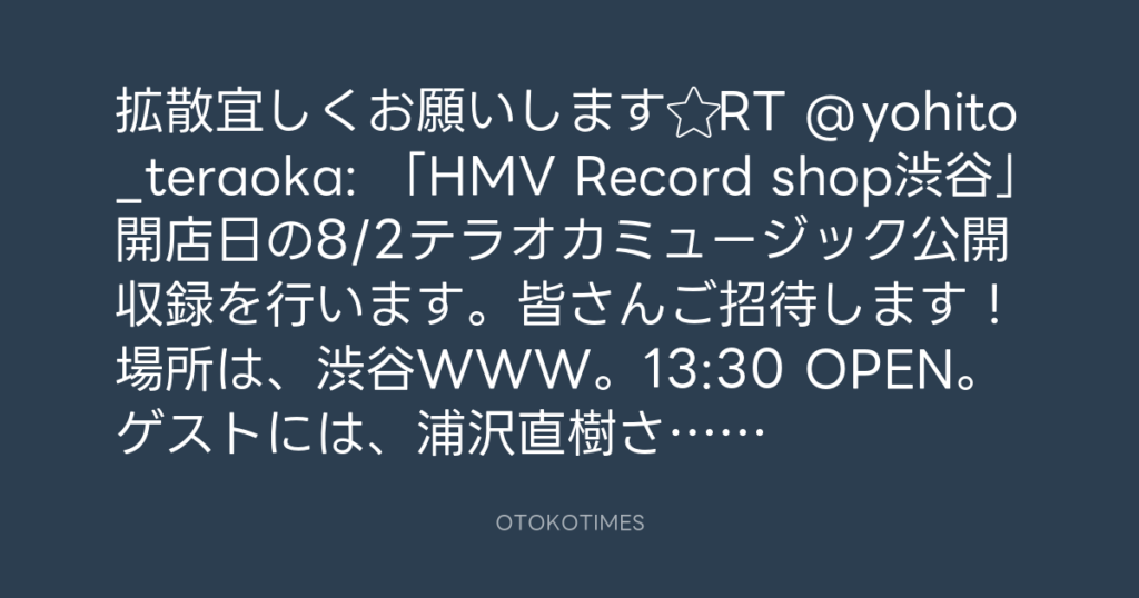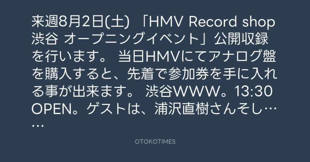 来週8月2日(土) 「HMV Record shop渋谷 オープニングイベント」公開収録を行います... -