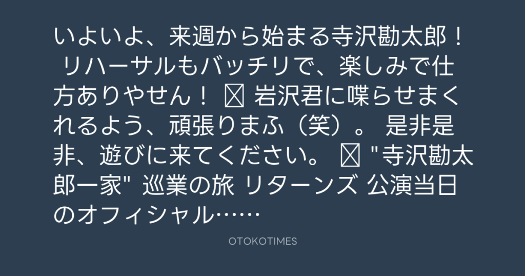 "#寺沢勘太郎一家" 巡業の旅 リターンズ ˗ˏˋ 初日・大阪公演終演 ˎˊ˗ ご来場ありが... -