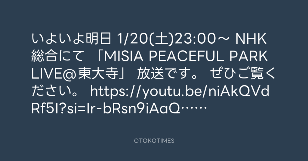 いよいよ明日 1/20(土)23:00〜 NHK総合にて 「MISIA PEACEFUL PARK LIVE@東大寺」 ... -