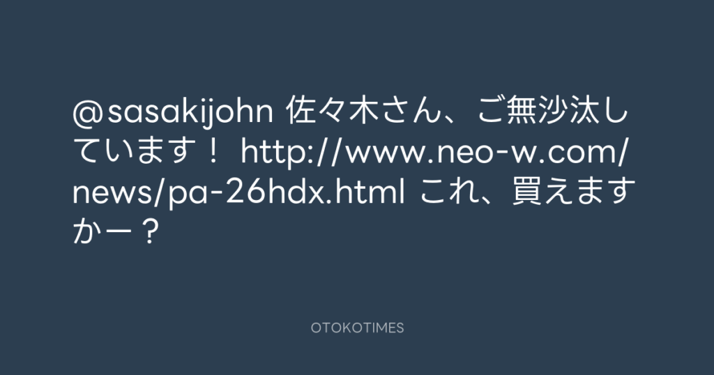 @sasakijohn 佐々木さん、ご無沙汰しています! http://www.neo-w.com/news/pa-26h...