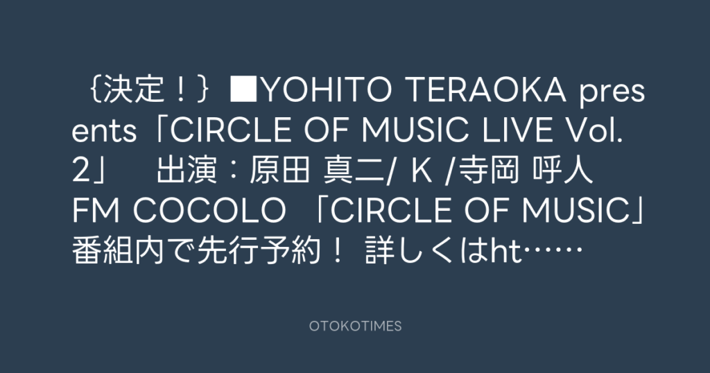 {決定!}■YOHITO TERAOKA presents「CIRCLE OF MUSIC LIVE Vol.2」 出演:原田 ... -