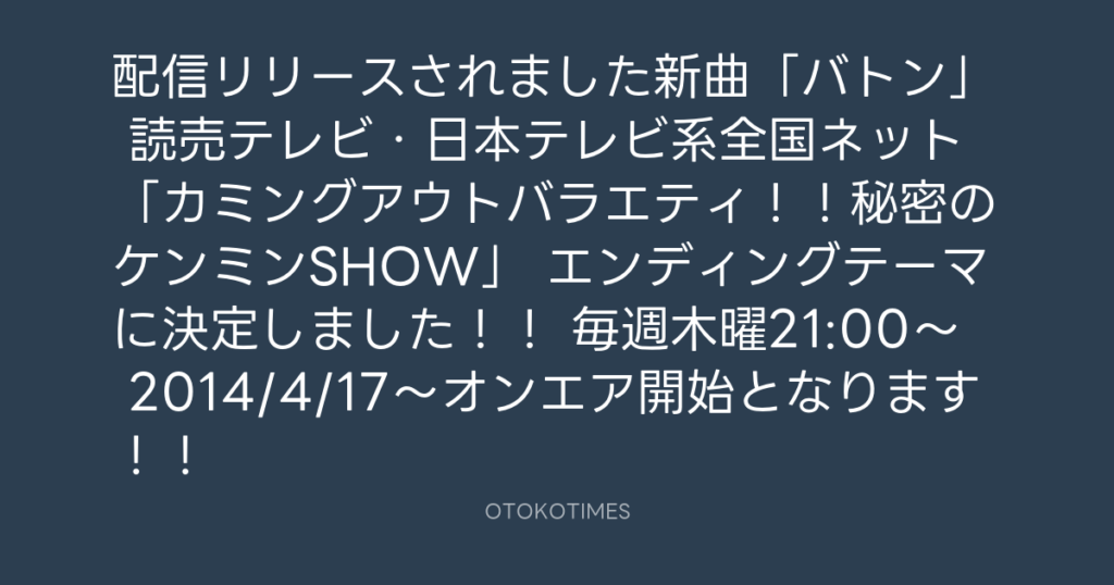 配信リリースされました新曲「バトン」 読売テレビ・日本テレビ系全国ネット 「カ...