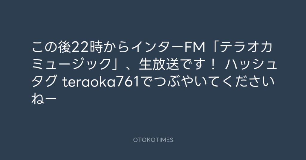 この後22時からインターFM「テラオカミュージック」、生放送です! ハッシュタグ t... -