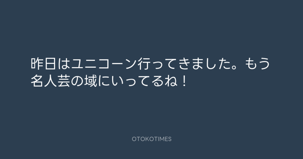 昨日はユニコーン行ってきました。もう名人芸の域にいってるね! -