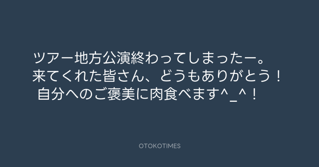 ツアー地方公演終わってしまったー。 来てくれた皆さん、どうもありがとう! 自分... -