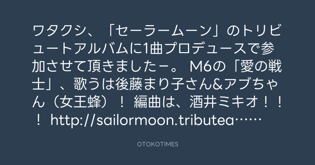 ワタクシ、「セーラームーン」のトリビュートアルバムに1曲プロデュースで参加させ... -