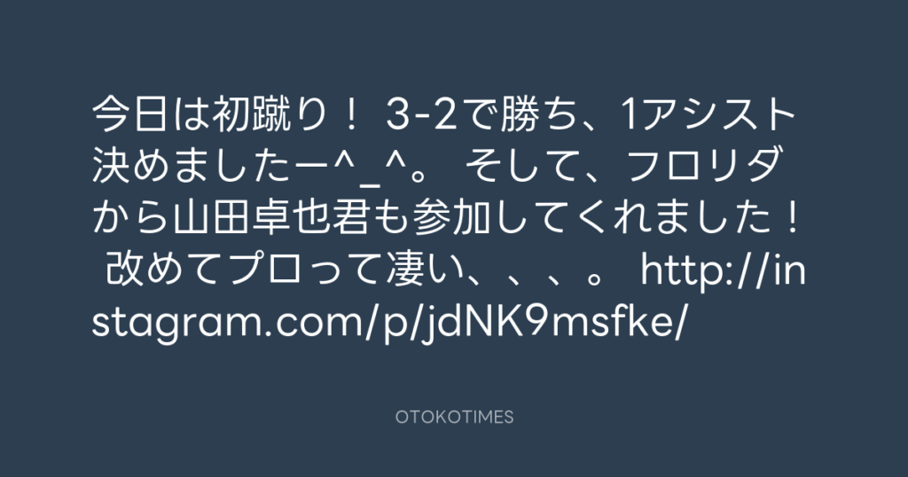 今日は初蹴り! 3-2で勝ち、1アシスト決めましたー^_^。 そして、フロリダから山田... -