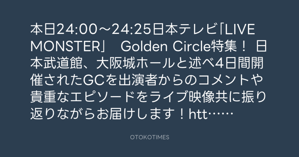 本日24:00~24:25日本テレビ「LIVE MONSTER」 Golden Circle特集! 日本武道館、大... -