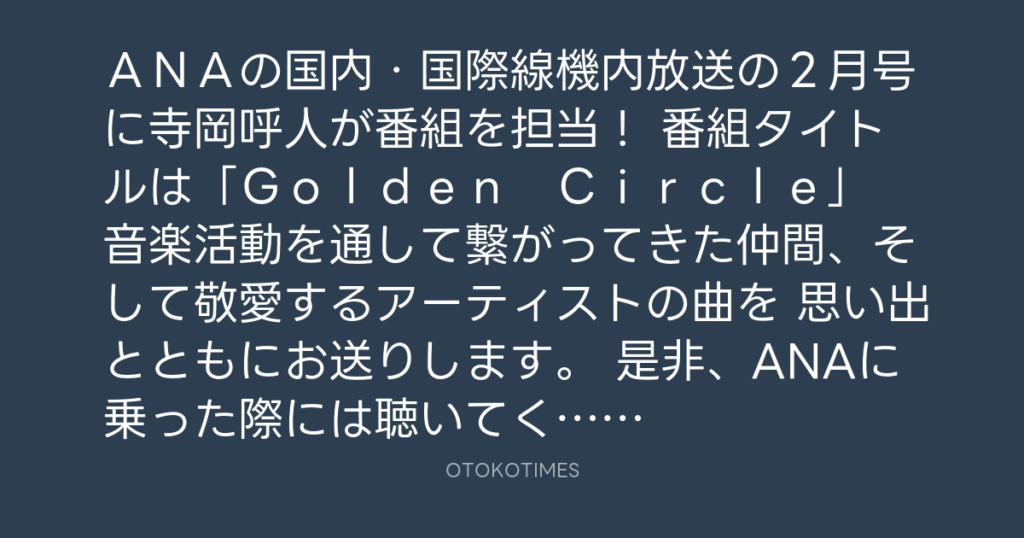 ANAの国内・国際線機内放送の2月号に寺岡呼人が番組を担当! 番組タイトルは「... -