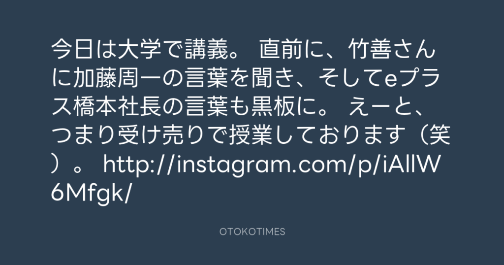 今日は大学で講義。 直前に、竹善さんに加藤周一の言葉を聞き、そしてeプラス橋本... -