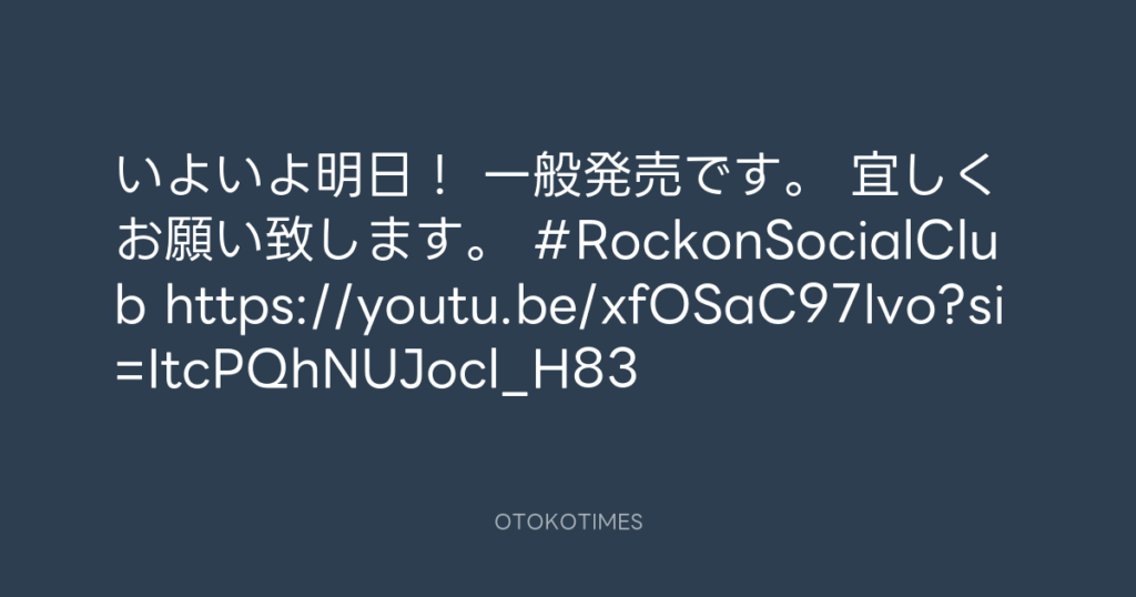 いよいよ明日! 一般発売です。 宜しくお願い致します。 #RockonSocialClub https:...
