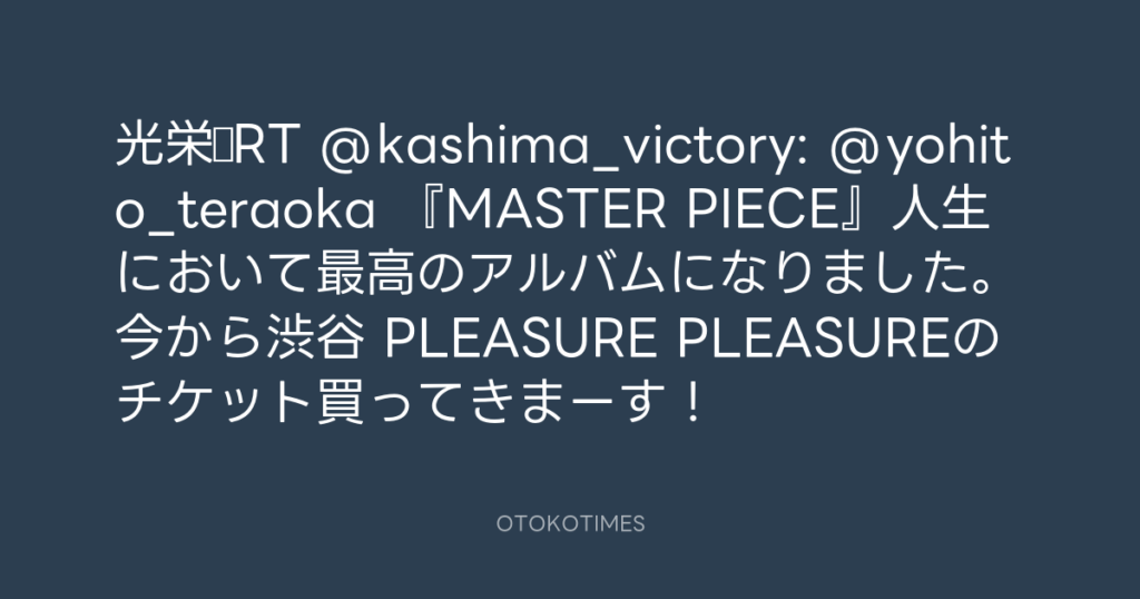 光栄☆RT @kashima_victory: @yohito_teraoka 『MASTER PIECE』人生において最高の...