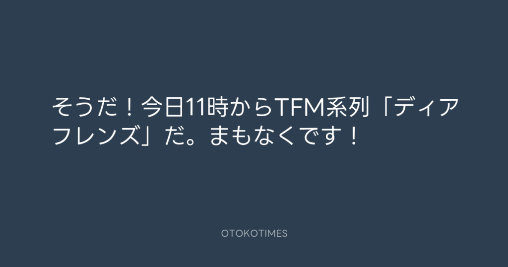 そうだ!今日11時からTFM系列「ディアフレンズ」だ。まもなくです! -