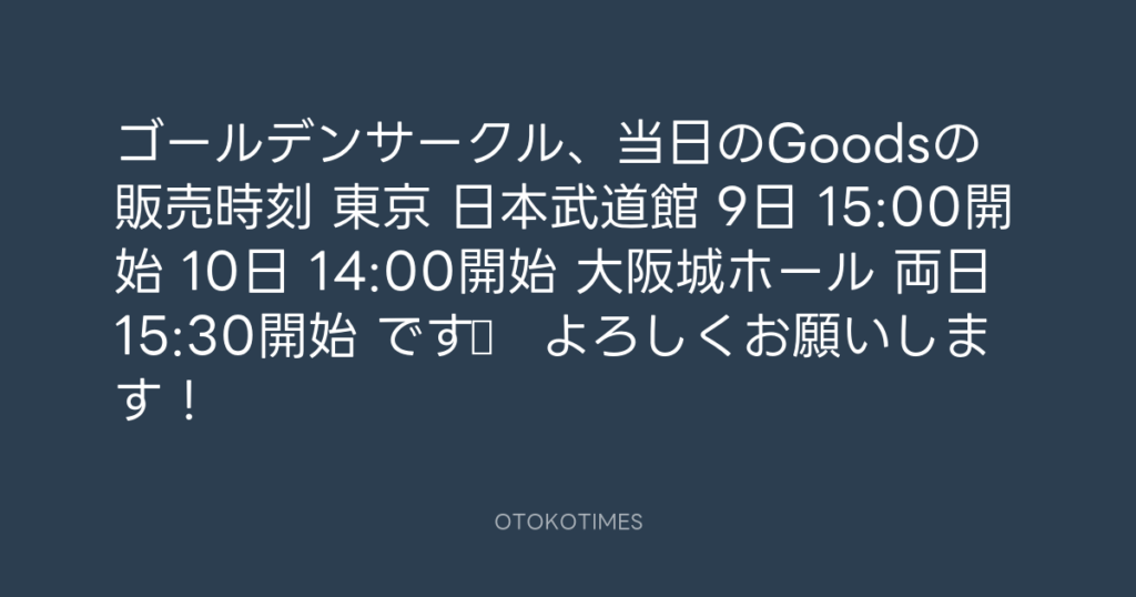 ゴールデンサークル、当日のGoodsの販売時刻 東京 日本武道館 9日 15:00開始 10日 ... -