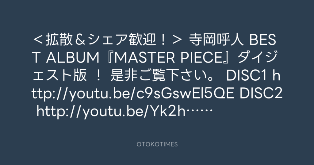 <拡散&シェア歓迎!> 寺岡呼人 BEST ALBUM『MASTER PIECE』ダイジェスト版 ! ... -