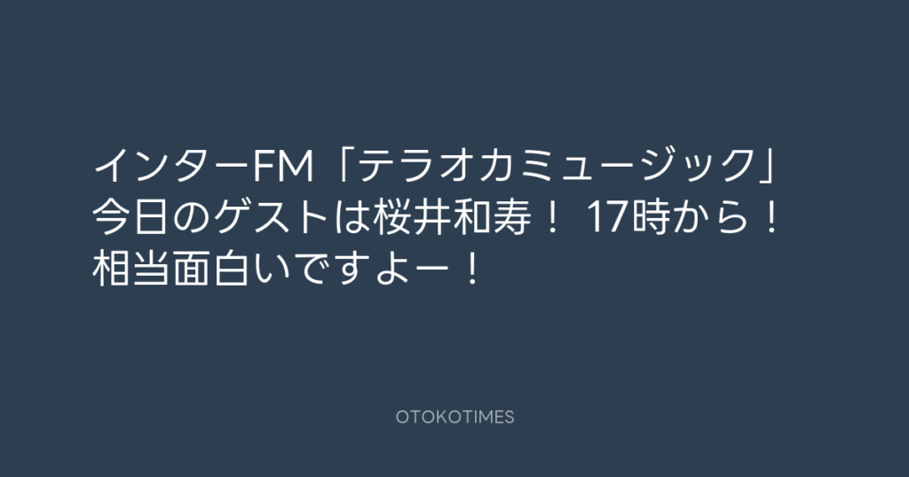インターFM「テラオカミュージック」今日のゲストは桜井和寿! 17時から!相当面白... -