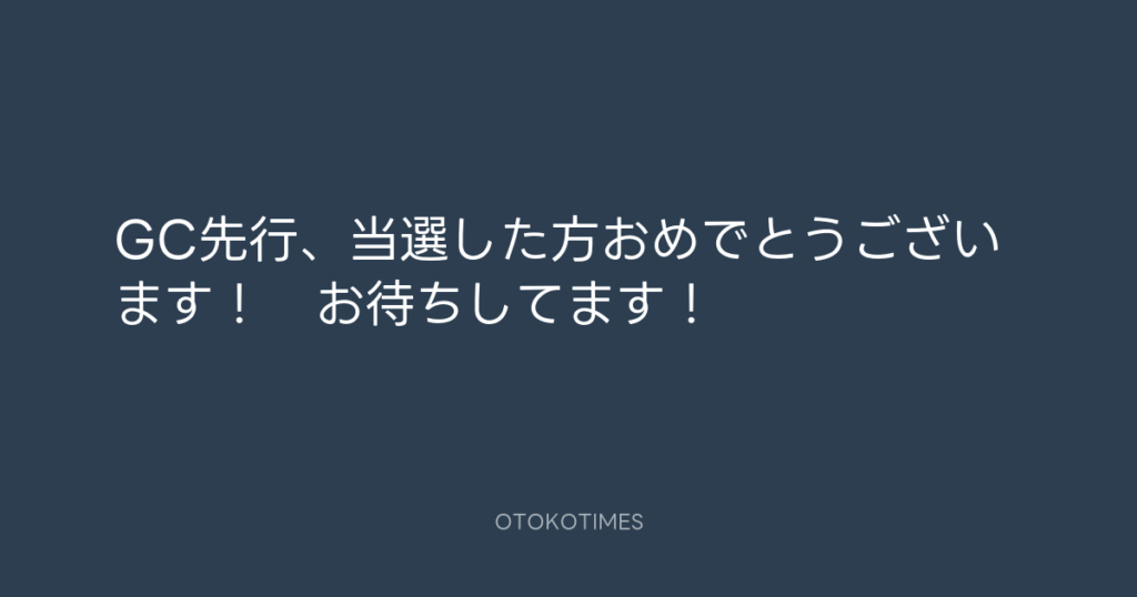 GC先行、当選した方おめでとうございます! お待ちしてます! -