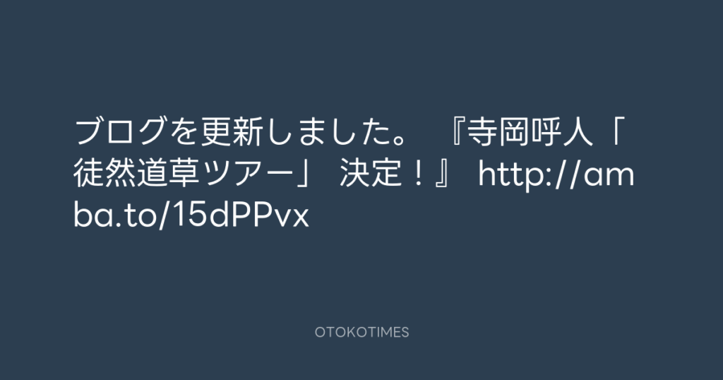 ブログを更新しました。 『寺岡呼人「徒然道草ツアー」 決定!』 http://amba.to/1... -