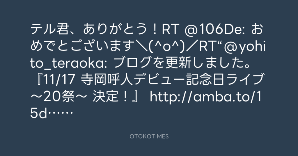 寺岡呼人 @yohito_teraoka – 16:16・2013年9月11日