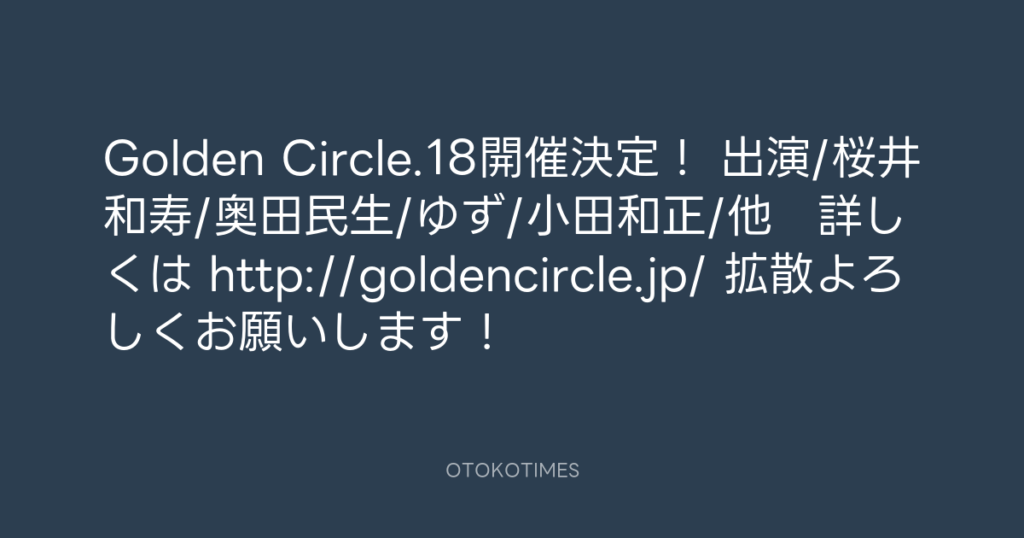 Golden Circle.18開催決定! 出演/桜井和寿/奥田民生/ゆず/小田和正/他 詳しくは ... -