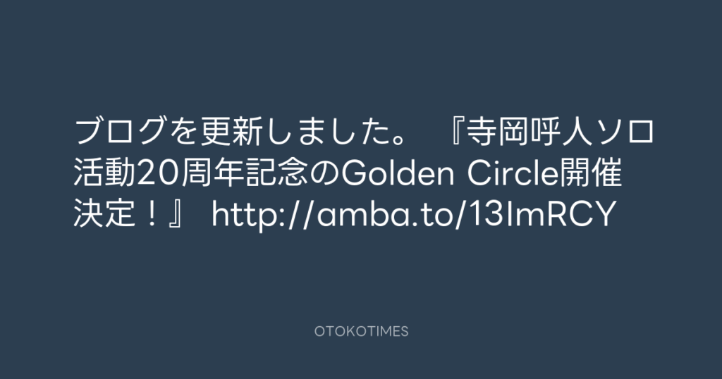 ブログを更新しました。 『寺岡呼人ソロ活動20周年記念のGolden Circle開催決定!... -