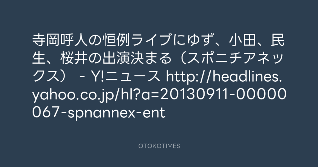 寺岡呼人の恒例ライブにゆず、小田、民生、桜井の出演決まる(スポニチアネックス... -
