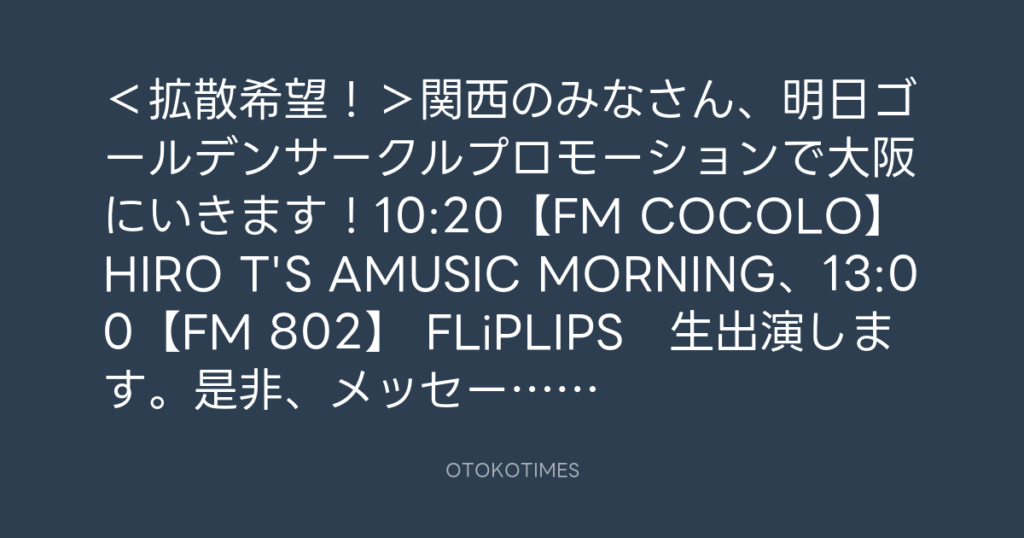 <拡散希望!>関西のみなさん、明日ゴールデンサークルプロモーションで大阪にい... -