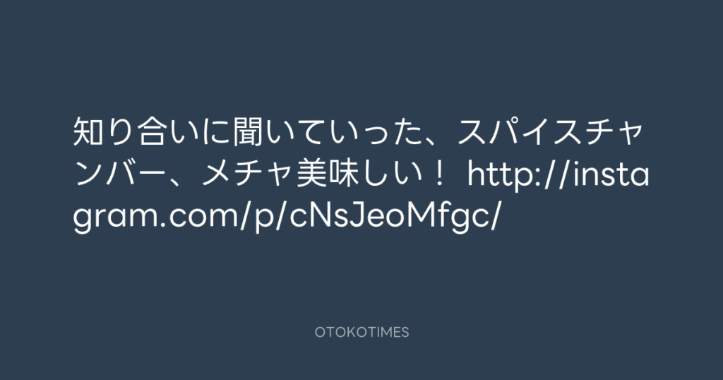 知り合いに聞いていった、スパイスチャンバー、メチャ美味しい! http://instagram... -