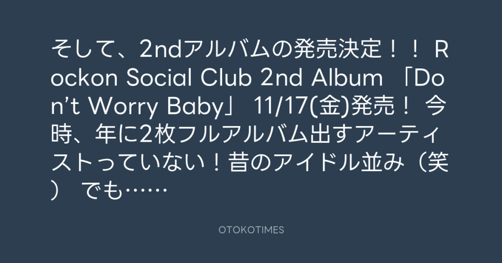 そして、2ndアルバムの発売決定!! Rockon Social Club 2nd Album 「Don’t Worry ... -
