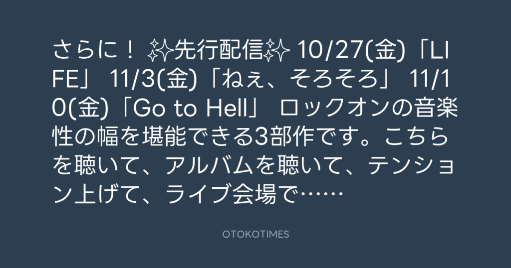 さらに! ✨先行配信✨ 10/27(金)「LIFE」 11/3(金)「ねぇ、そろそろ」 11/10(金)... -