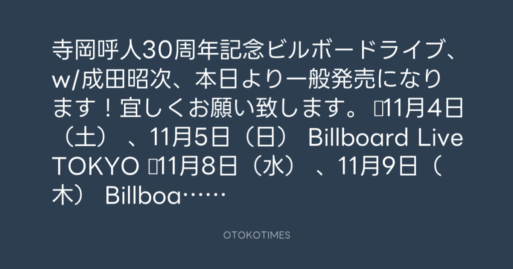 寺岡呼人30周年記念ビルボードライブ、w/成田昭次、本日より一般発売になります!... -