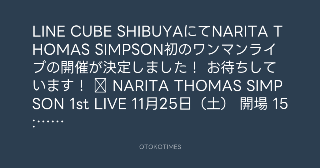 LINE CUBE SHIBUYAにてNARITA THOMAS SIMPSON初のワンマンライブの開催が決定しま... -