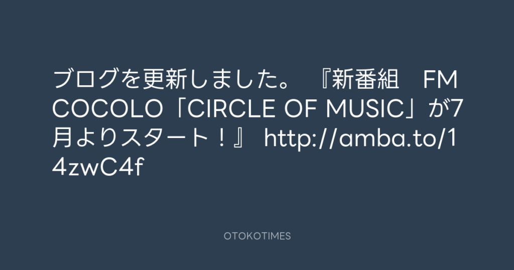 ブログを更新しました。 『新番組 FMCOCOLO「CIRCLE OF MUSIC」が7月よりスタート...