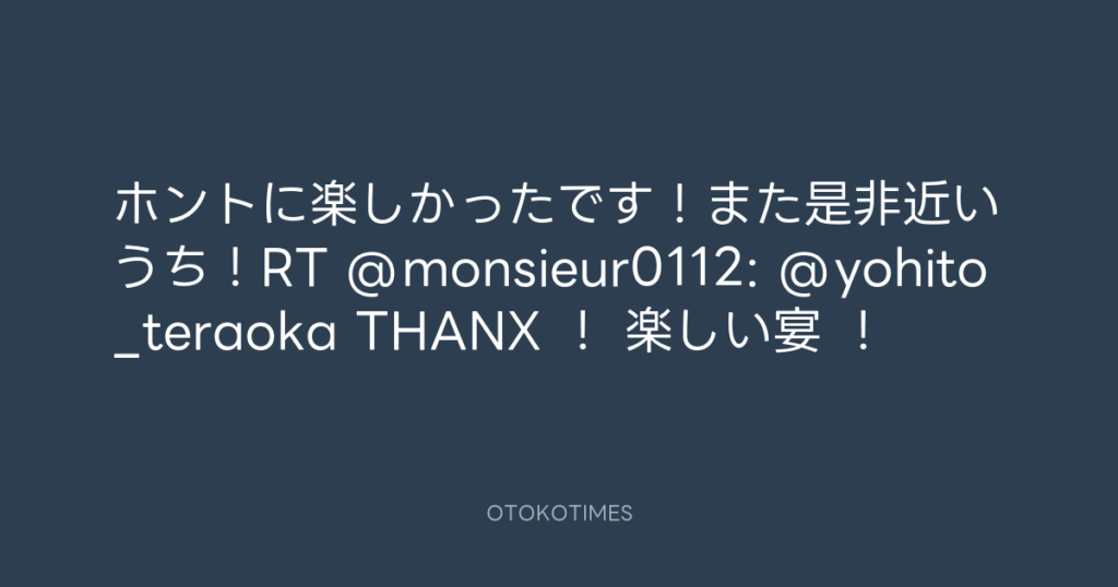 ホントに楽しかったです!また是非近いうち!RT @monsieur0112: @yohito_teraoka T... -