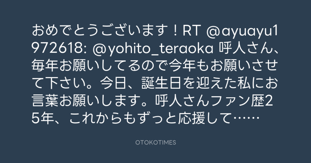 おめでとうございます!RT @ayuayu1972618: @yohito_teraoka 呼人さん、毎年お願い... -