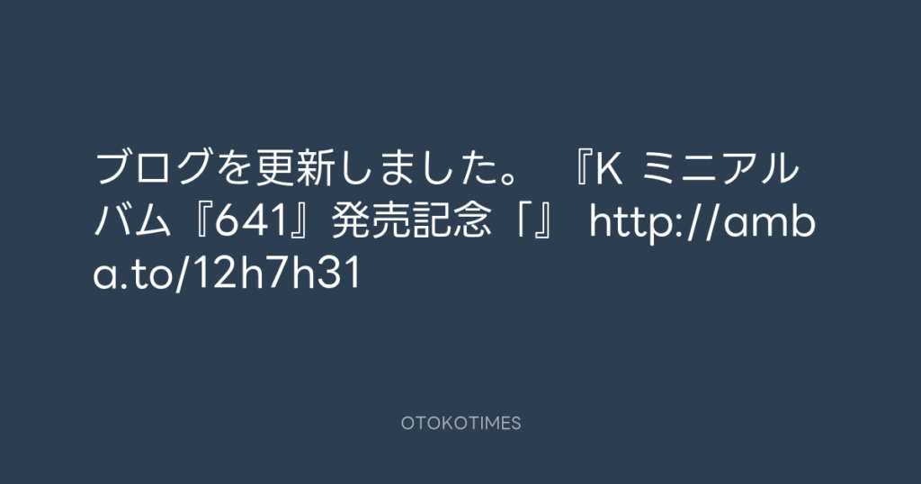 ブログを更新しました。 『K ミニアルバム『641』発売記念「』 http://amba.to/12h...