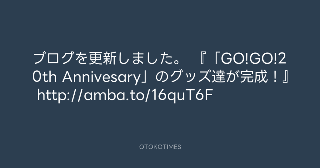 ブログを更新しました。 『「GO!GO!20th Annivesary」のグッズ達が完成!』 http:/... -