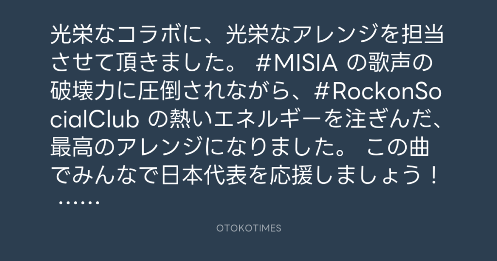 光栄なアレンジを担当させて頂きました! MISIA、Rockon Social Clubとのコラボ曲... -