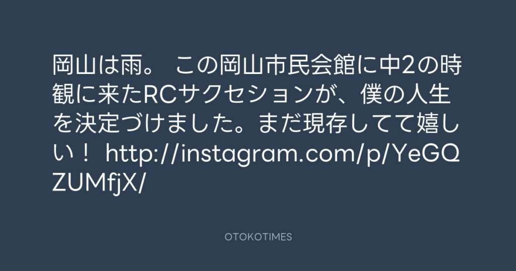 岡山は雨。 この岡山市民会館に中2の時観に来たRCサクセションが、僕の人生を決定... -