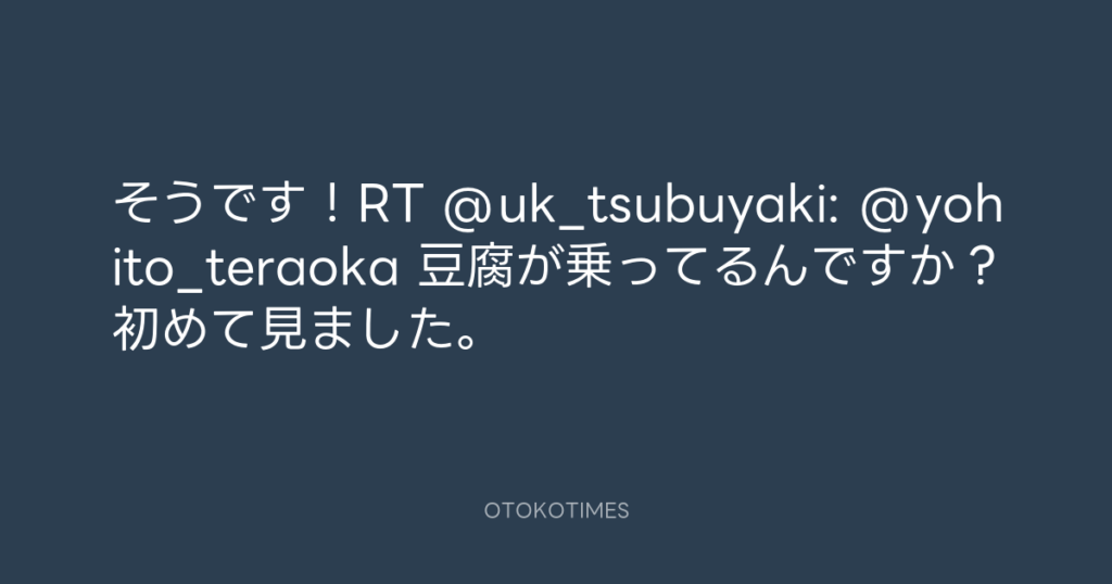 そうです!RT @uk_tsubuyaki: @yohito_teraoka 豆腐が乗ってるんですか?初めて見... -