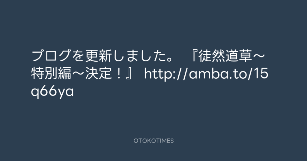 ブログを更新しました。 『徒然道草~特別編~決定!』 http://amba.to/15q66ya -