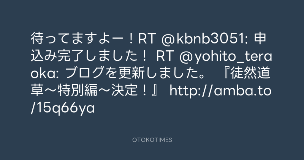 待ってますよー!RT @kbnb3051: 申込み完了しました! RT @yohito_teraoka: ブログ... -