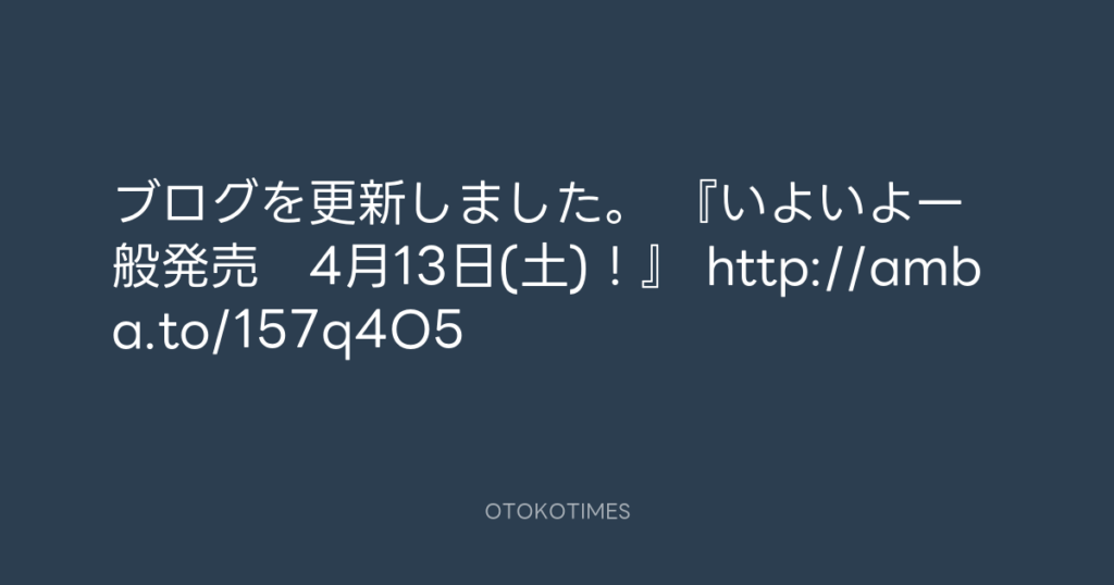 ブログを更新しました。 『いよいよ一般発売 4月13日(土)!』 http://amba.to/157... -