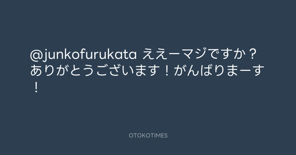 @junkofurukata ええーマジですか?ありがとうございます!がんばりまーす! -